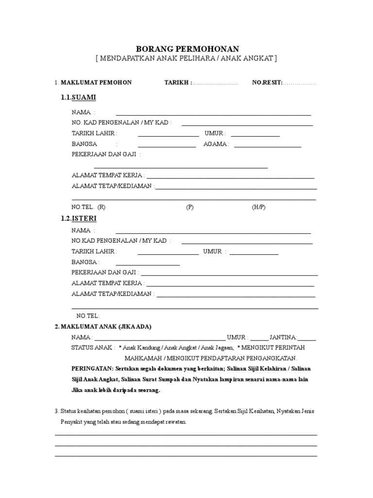 Borang Permohonan Anak Angkat - Borang permohonan baru bantuan sara hidup rakyat.